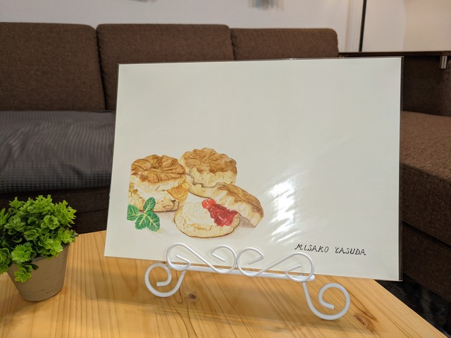 焼き立てのスコーンと紅茶でティータイム。 マーマレードといちごのジャムを添えて。 サイズ : B5 素材 : 細目画用紙・水彩色鉛筆 ポストカードサイズは1枚150円で販売しています。 !!【ご購入前に以下よくご確認ください】!! 出品している作品は、全て手描きの一点物です。 ienの水彩色鉛筆画は、敢えて空間をあけています。 手にしてくださる方お一人おひとりがその空間を想像し、物語をつくっていただくことで完成するからです。 発送は送料無料の場合はレターパックでお送りします。 オプション設定で額装して発送することもできますので、到着後すぐにお好きな所に飾ることができます。 価格は1枚分の表示です。 こちらの価格は送料が含まれています。 額はありません。 到着後はなるべく早く箱から出してください。 画材の性質上、水や直射日光を避けて展示ください。 minneで販売もしておりますので、先にご注文があった際には遅れて在庫切れとなる場合があります。 予めご承知おきください。