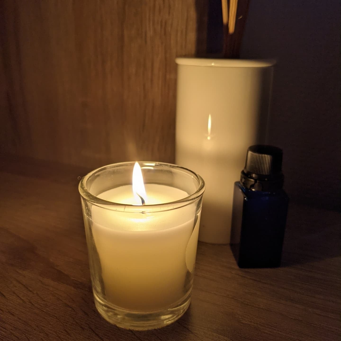 ienのアロマキャンドルは、ほんわり香るよう精油の量を調節しています。
