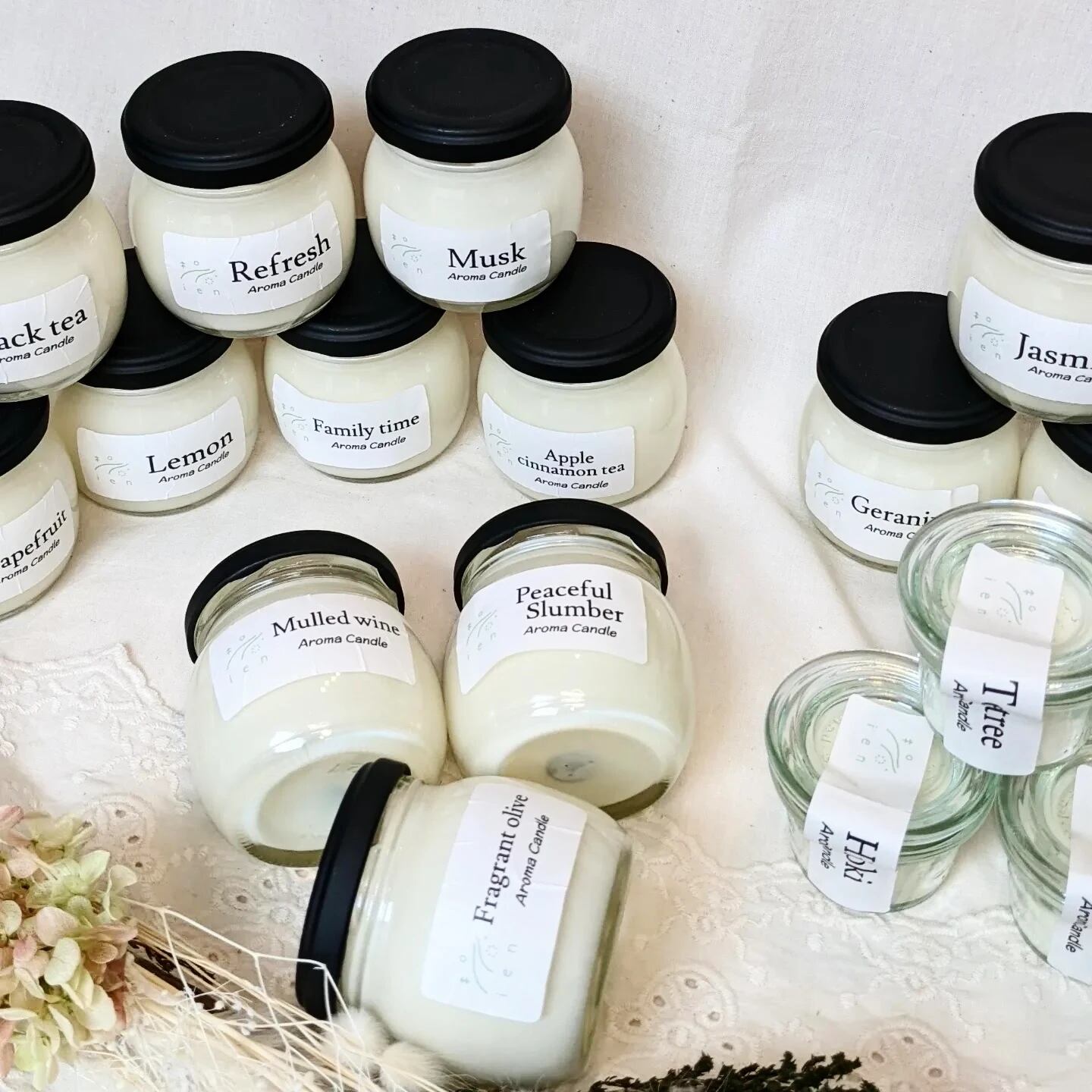 ienのアロマキャンドルは、ほんわり香るよう精油の量を調節しています。