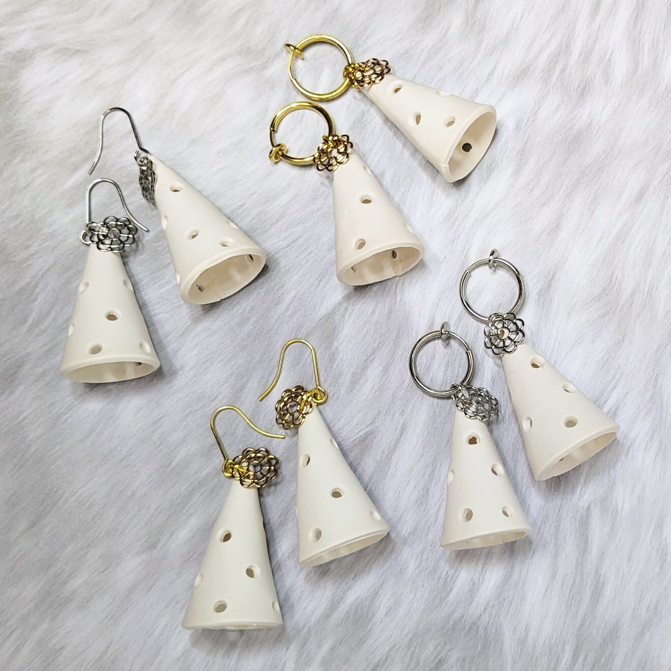 ポリマークレイをシート状にし、円すい形に手巻きすることで雪の積もったツリーを模りました。